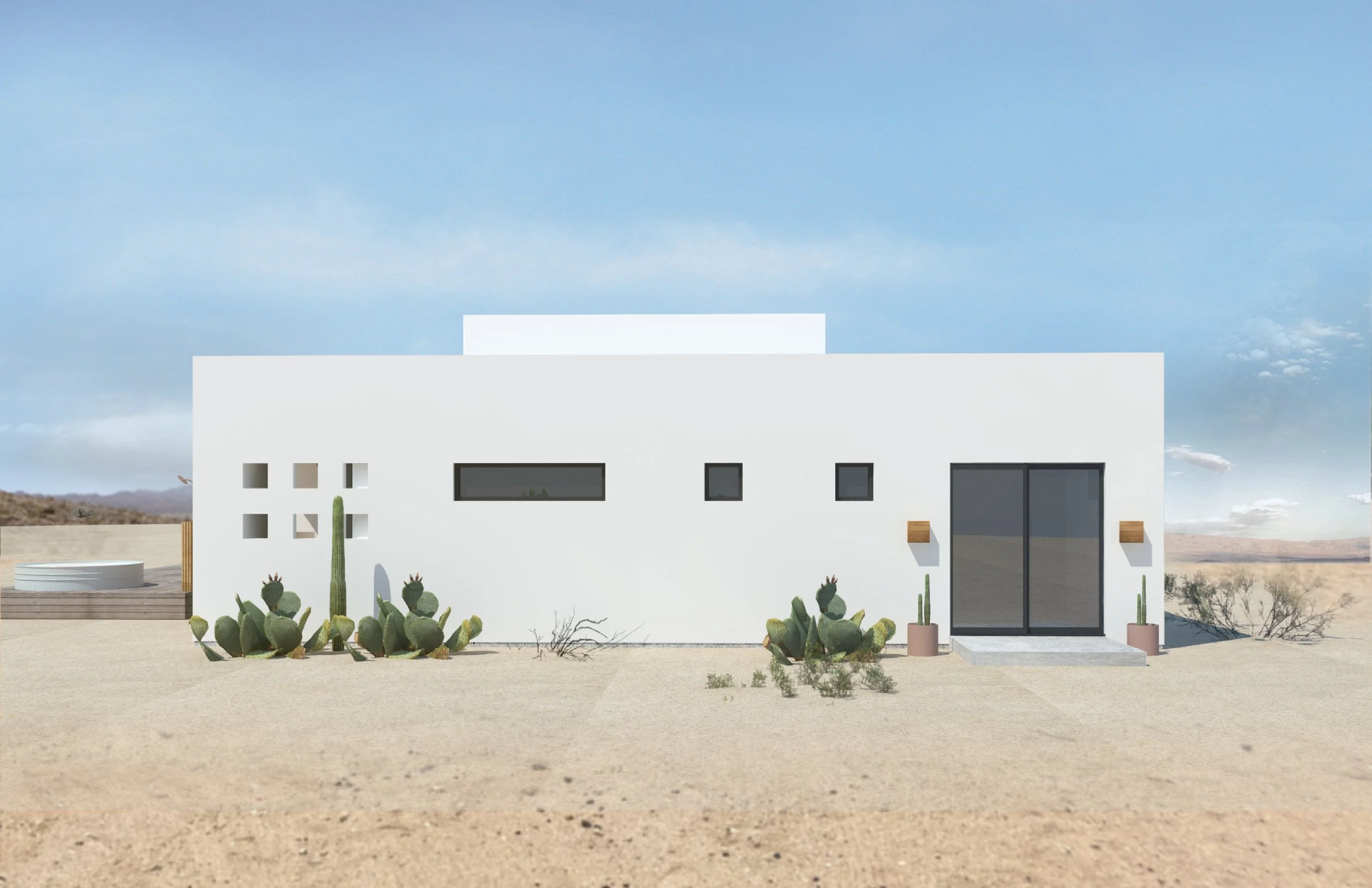 Located in the high desert area, the project completely transforms an existing gabled roof structure into a minimal desert home. Thicker wall assemblies create shaded areas that flank the building, providing a controlled environment between the interior and the exterior. The building carefully places minimally detailed archways, and tilework that emulate traditional desert homes in other parts of the world, creating a more eclectic feel both in the interior and the exterior.